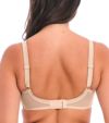 3枚パネル仕立てでカップトップからストラップにかけてサテン刺繍が施されたデザイン。 パッドなしのライトな付け心地、バスト全体を覆ってくれるフルカップはグラマーさんに一番人気です。