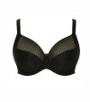 4枚のパネルを縫製したフルカップ。それぞれ4方向からバストを整え、綺麗なシルエットで着用いただけます。カップ上部の透け感のあるストレッチレースはバストの丸みに柔らかく沿い、顔まわりを明るく見せてくれます。カップ下部は上質なファブリックを使用。裏地をつけずにシンプルに仕上げています。普段使いにオススメです。