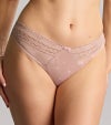 デイリーに着用いただけるトープ(ベージュ系)を基調に、シンプルで履きやすいミニマムデザインのブリーフ。ブラジリアン型(ハーフカット)、透け感のあるデザインです。