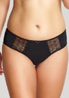 シアパネルを前の付け根部分に使いフェミニン且つセクシーな印象のデザイン。