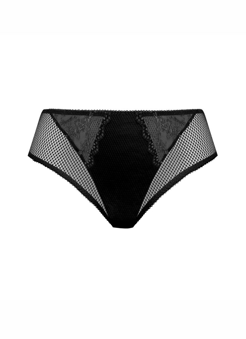 日常にエレガンスをもたらす、Charleyのハイレッグブリーフ。レースのサイドパネルとシアーメッシュのバックデザインで、ハイカットレッグシェイプが特徴です。サイズはMから4XLまでご用意しております。