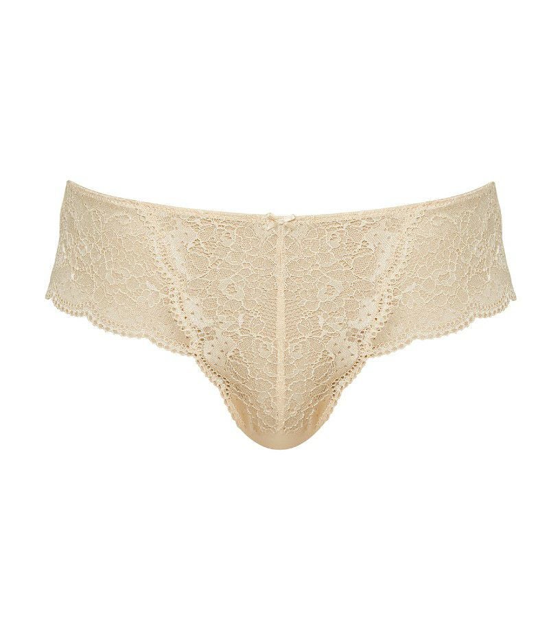 フロントはレース、バックはシア―と、両サイドで印象の変わる魅惑的なブリーフ。