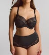 Esmeブラと美しくコーディネートできる、ハイウエスト型のディープブリーフ。ストレッチレースと、やわらかな肌ざわりのファブリックパネルを組み合わせ、快適なはき心地と美しいフィット感を叶えます。ほどよいカバー力で、ヒップラインをすっきりと整えてくれる一枚です。