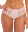 ブラッシュカラーのフュージョンブリーフでコーディネートを完成させましょう。コンテンポラリーなストライプジャカード生地を使用し、前面には裏地を付けて透けにくい仕様にしました。フラットなゴムウエストが服の下で滑らかな仕上がりを実現します。