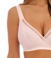 ジャガード生地を主役に、王道のベーシックアイテムを揃えるフュージョンシリーズ。 こちらの前開きブラジャーは、乳がんの術後にもご利用いただける設計となっています。とても柔らかく肌負担を減らす生地を使用し、敏感な肌にもやさしい仕上がりです。