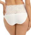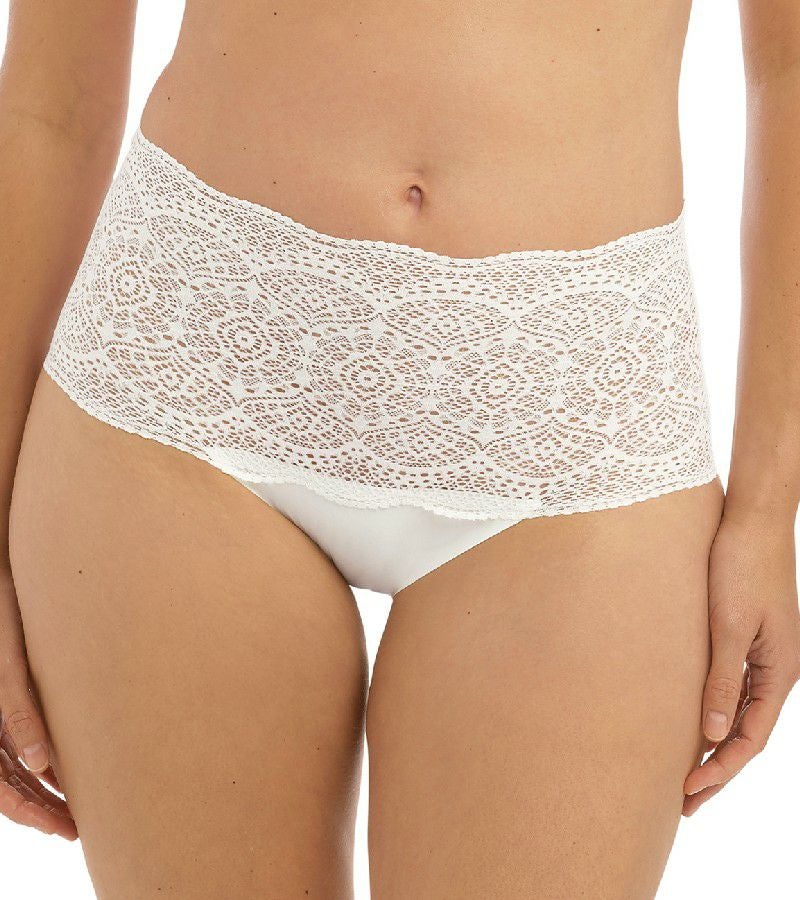ワンサイズでXS〜XL(日本サイズS~3L)をカバーする革新的なストレッチ素材を使用したブリーフです。 アールデコからインスパイアされた装飾的なレースにもしっかりとストレッチが効いています。レース部分はフラットレースですので、衣服の下で目立たちにくいデザインです。まさに快適さとスタイルを融合させた、日常使いにぴったりのアイテムです。非常に柔らかい生地で作られており、まるで何も身に着けていないかのような感覚と、衣服の下で目立たない仕上がりを提供します。 ウエスト、付け根部分も圧迫感を最大限抑えたふんわりフィットです。