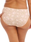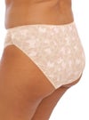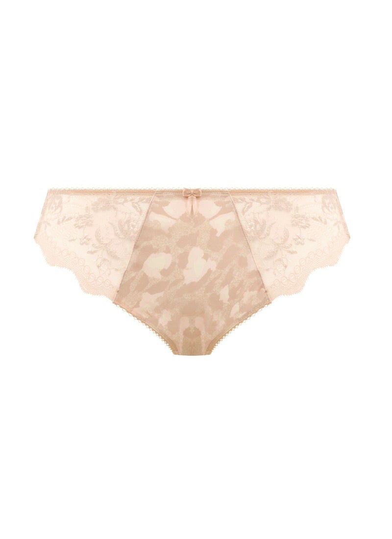 ウエストラインの高さがスタンダードタイプの通常型ブリーフです。フロントサイドには上質なストレッチレースが施され、フィット感のある快適な履き心地。お尻はしっかりとフルカバーになっています。全体にプリントが施された華やかな1枚です。