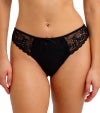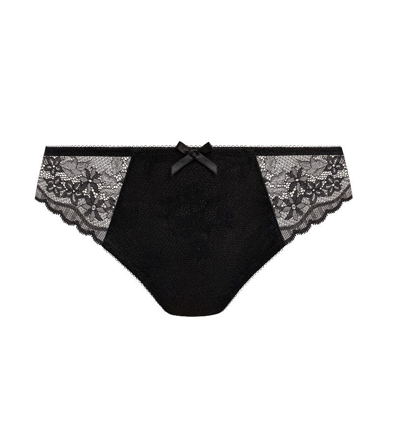 フロントパネルには裏打ちを施し、透け感を抑えた安心感のある仕上がりに。サイドパネルには可憐なフラワーレースをあしらい、フェミニンで上品な印象を演出します。