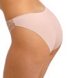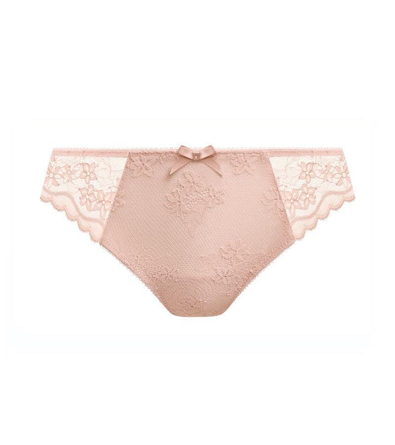 フロントパネルには裏打ちを施し、透け感を抑えた安心感のある仕上がりに。サイドパネルには可憐なフラワーレースをあしらい、フェミニンで上品な印象を演出します。