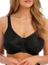 心地の良い肌触りと、通気性の良いコットンの裏打ちが施されたフルカップブラ。お椀型バストや、バルコニーブラでカップから胸が溢れやすい方にオススメのカップ上部からストラップが繋がるデザイン。太めストラップと、高さのあるセンターゴアでしっかりバストを支えます。