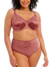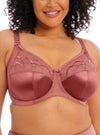 3枚パネル仕立てのカップ縫製にサイドサポートが加わり、DDからKカップまでのカップサイズでフィット感、前方の形状維持、そして優れた持ち上げを提供します。トップカップには刺繍のアーチ状のデザインが施され、エレガントな印象に。左右のバストをしっかりと分け、綺麗なシルエットに仕上がります。ウイングにはパワーネットの裏地が施され、脇や背中からもバストを支えてくれるので軽い着心地が続きます。