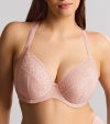 ワイヤー入り・ノンパッド仕様で、自然なフィット感と安定したサポートを実現。4枚接ぎのカップ構造に、トップにはストレッチレース、下部には裏打ちを施し、やさしく包み込みながら美しいバストラインをつくります。裏側にクッション性を持たせた長さ調節可能ストラップで、長時間でも快適な着け心地に。