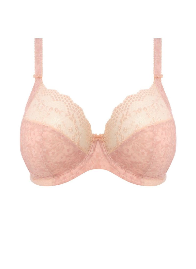 3枚パネル仕立てのカップ縫製にサイドサポートが加わり、DDからJJカップまでのカップサイズでフィット感、前方の形状維持を提供します。Vネックタイプですので、通常のブラのワイヤーが鳩尾に当たりやすい方には大変お勧めです。強力なストレッチレースをカップ上部に使用し、滑らかな着心地に。ウイングにはパワーネットの裏地が施され、脇や背中からもバストを支えてくれるので軽い着心地が続きます。