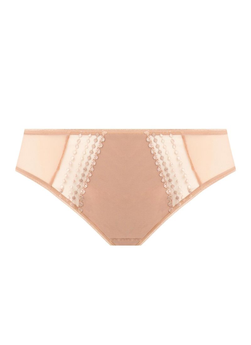 シアー生地を背面に使ったスタンダード型ブリーフです。刺繍が素敵なデザイン。コットンクロッチ付きで安心の履き心地です。