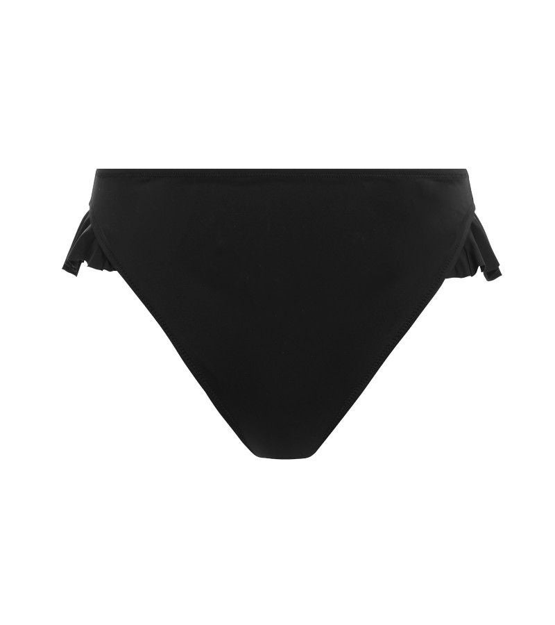 脚長効果が期待できるハイレグタイプは、カバー感をしっかりと残したデザインに仕上げています。Vカットのレッグサイドにはフリルディテールがあしらわれ、脚を微かにカバーしてくれています。全体に裏地が施された安心の着心地。
