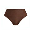 お腹まわりをしっかりとカバーするやや高めの丈感で、安心感のある着用感を叶えるデザインです。フロントはギャザーによる柔らかなドレープがほどよく立体感を生み、お腹まわりを美しく整えて見せてくれます。内側まで丁寧に総裏地で仕立て、快適な着心地を実現しました。さらに、ブランドロゴのタブは太陽光で熱くなりにくい素材を使用し、ビーチでも心地よくお使いいただけます。