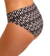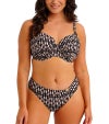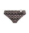 こちらのミッドライズビキニブリーフは、程よいカバレッジのデザインで、フロントウエストにはゴールドカラーのリングをあしらったゴージャスなデザイン。全面裏地付きで、安心感のある着用感も特長です。