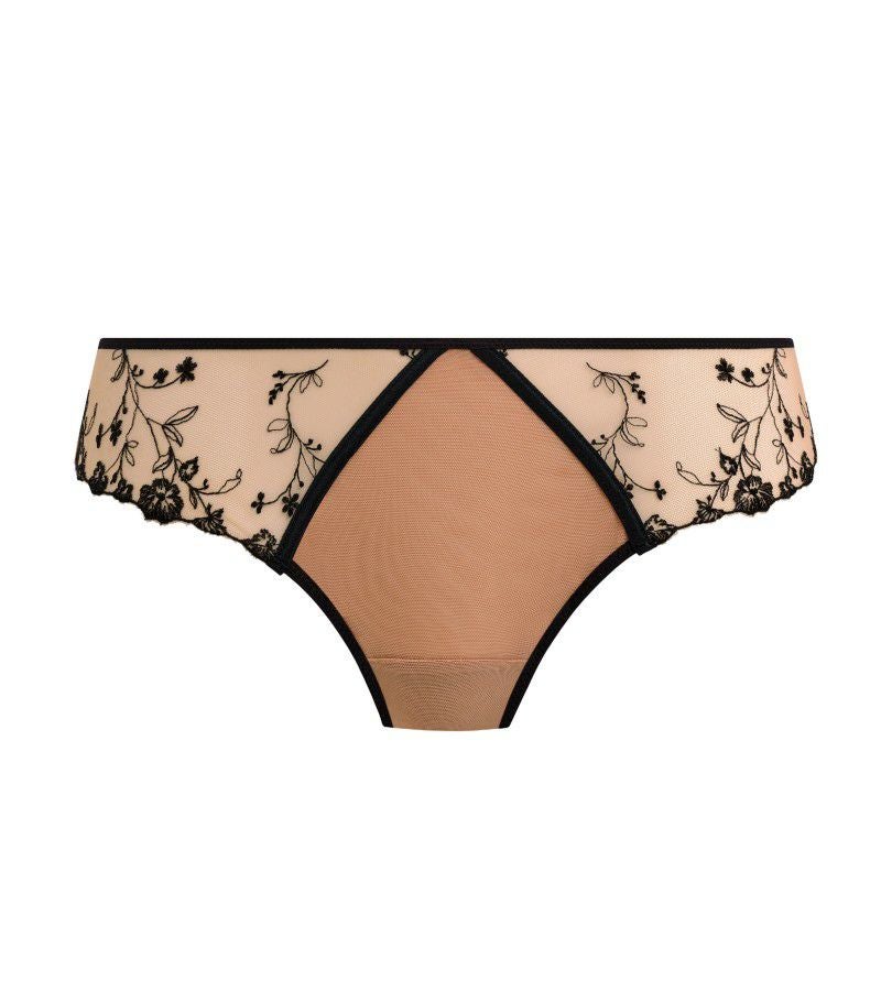こちらのブリーフは、サイドに施された繊細なフローラル刺繍が印象的なデザイン。バックは二重のメッシュ素材を使用し、折り返し仕様のレッグエッジが肌に優しくフィット。ラインが響きにくく、なめらかなシルエットを叶えます。