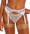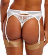 フロント全体にあしらわれた繊細なホワイトのアイラッシュレースが、華やかさとほどよいセンシュアルさを演出し、ランジェリーセットに印象的なアクセントを添えます。