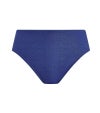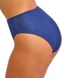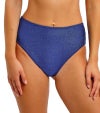 こちらのハイウエストビキニブリーフは、ウエストを高めに設定したデザインで、脚をすらりと見せる美しいラインが魅力。ヒップは程よいカバレッジで安心感がありながらも、洗練されたシルエットを描きます。生地にはトレンド感あふれるメタリックゴールドの糸を織り込み、さりげない輝きがスタイルに華やぎを添えます。