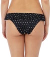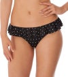 ローウエスト型フリル付きブビキニブリーフ。シンプルなブラックに映える控えめなダイヤモンドプリントと、ウエストにあしらったフリルディテールがポイント。