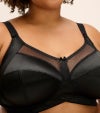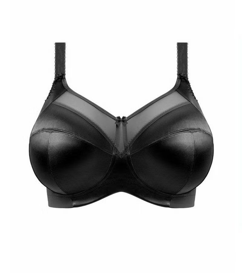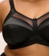 3枚パネル&サイドサポートパネルを縫製し、前にしっかりバストを整えてくれるノンワイヤータイプのブラです。シルキーな肌触りの1枚仕立てのカップ、太いアンダーバンドで快適な着心地。カップ上部のシアーパネルはネックラインを平らにスッキリ見せてくれるデザインです。パワーネットのウイングは柔軟性のあるサイドボーンがほどこされ、脇や背中からもバストをサポートしてくれます。