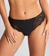 タイムレスに愛されるブラックレースのブラジリアンブリーフで、素晴らしい気分を味わってください。この愛らしいレースブリーフは、身体にフィットする優雅なシルエットで、曲線を美しく引き立てます。自信を高めてくれる理想的なブリーフに仕上がっています。