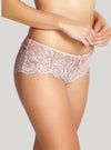 贅沢なオールオーバーレース仕立てのボーイレッグ型ショーツです。 波打つようにデザインされた足ぐりは浅めです。ミッドライズで、カバー力もありつつ レースから透ける肌がセクシーなアイテム。レースと同色のコットンクロッチ付き。