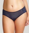 ジャガード織のシア―生地で透け感のある定番型ブリーフです。 後ろにはレースを使いブリーフラインがうつりにくいデザインに。