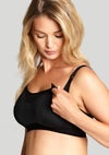 妊娠中から授乳時まで着用いただける新マタニティブラ、キャサリンが新登場。ブラックのマイクロファイバー生地と、ストレッチレースを合わせたモダンでスタイリッシュなデザインです。ノンワイヤーの快適な着心地と、内側にほどこされたサイドスリングで自然な脇寄せ。カップ内側は縫い目のないスムースな生地(パッド加工なし)になっており、肌に優しく纏うような感覚です。後ろのホックは体型(胸郭)の変化に柔軟に対応する6段階調整ホック。片手で簡単に開閉が可能なクリップ仕様です。