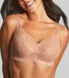 ノンパッドのソフトカップデザインで、フルカップならではの安心感を提供するブラです。ワイヤーレス仕様ながらもしっかりとしたサポート力を実現し、快適な着け心地を追求しました。トップカップにはストレッチメッシュで裏打ちされた繊細なレースを使用しており、美しさと機能性を兼ね備えています。さらに、幅広でソフトなタッチのアンダーバンドが快適さを高めながら、しっかりとバストを支えます。※レースに100%リサイクル糸を採用しています。