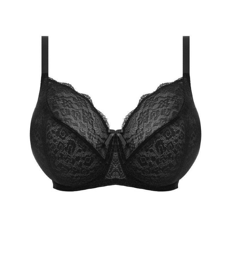 豊かなバストを美しく引き立てるこのスタイルは、ブラックレースが放つ timeless な美しさでランジェリーの必需品に。裏地付きの下部カップが優れた形とサポートを提供し、深めのワイヤーがさらなるカバー力と心地よさをもたらします。