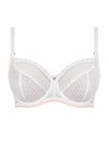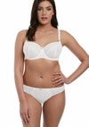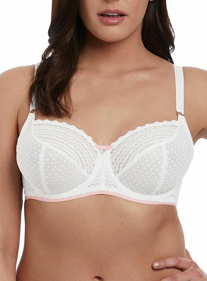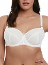 3枚パネル仕立てで、各3方向よりバストを整えてくれるバルコニーブラ。 カップ上部はどんなバストシェイプにもフィットしてくれるストレッチレースになっております。