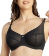 こちらのEnora UWミニマイザーブラは、ジャカードのシアーレース(やや透け感のある生地)を使用しており、無理なくバストを縮小するように設計されています。3枚パネルを縫製したカップはバストを押しつぶすことなくカプセル化し、2.5センチ~4センチ(約1カップ)ほどサイズダウン。薄いメッシュのライナー(裏地)をほどこしたフルカバレージタイプのカップです。マイクロファイバーのウイングにもメッシュのライナーをほどこし、しっかりとバストをサポートしてくれます。