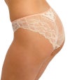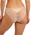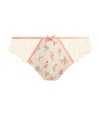 フロントとセンターバックには、オリジナルのフローラルプリントをあしらい、前後どちらから見ても華やかな印象に仕上げています。フロントとバックにはストレッチレースを使用し、心地よいフィット感を実現。バックスタイルにはスカラップレースを採用し、アウターにラインが響きにくい仕上がりです。フロントのシームにはコントラストの効いたパイピングを施し、デザインのアクセントに。さらに、フロント中央にはリボンディテールを添え、フェミニンな魅力をプラスしています。