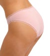 やわらかく、愛らしく、思わず手に取りたくなる一枚です。ラグジュアリーなソフトタッチ素材を使用し、長時間でも心地よく過ごせる快適なはき心地を実現。ウエストとレッグラインには繊細なレーストリムをあしらい、さりげない華やかさを添えました。