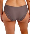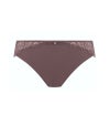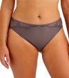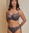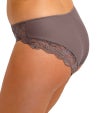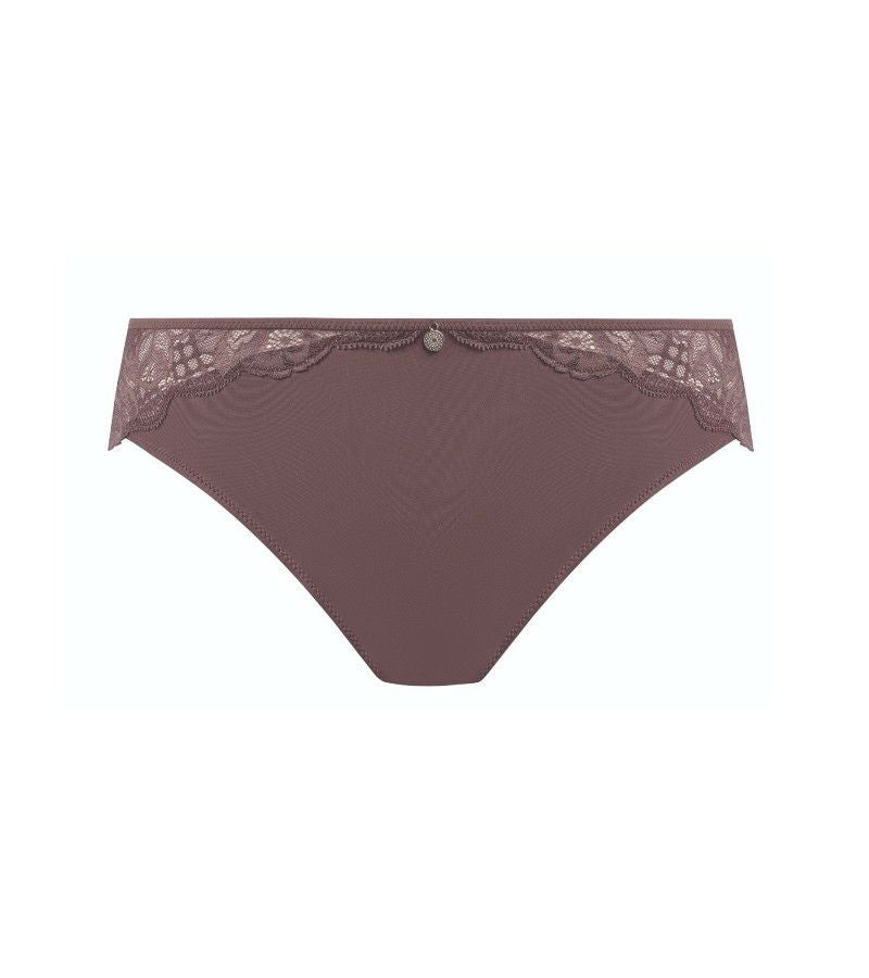 ソフトタッチで肌心地のよい生地を使ったスタンダード型ブリーフ。ウエスト回り、ヒップラインにレースをあしらった華やかなデザインに仕上がっています。センターフロントにシルバーのチャーム付き