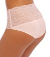 ワンサイズでXS〜XL(日本サイズS~3L)をカバーする革新的なストレッチ素材を使用したブリーフです。 アールデコからインスパイアされた装飾的なレースにもしっかりとストレッチが効いています。レース部分はフラットレースですので、衣服の下で目立たちにくいデザインです。まさに快適さとスタイルを融合させた、日常使いにぴったりのアイテムです。非常に柔らかい生地で作られており、まるで何も身に着けていないかのような感覚と、衣服の下で目立たない仕上がりを提供します。 ウエスト、付け根部分も圧迫感を最大限抑えたふんわりフィットです。