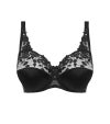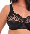3枚パネル仕立てでカップトップからストラップにかけてサテン刺繍が施されたデザイン。 パッドなしのライトな付け心地、バスト全体を覆ってくれるフルカップはグラマーさんに一番人気です。