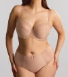 このブラは4枚パネル仕立てのバルコニーブラで、すべてのバストタイプに対応する快適なフィット感を提供します。特別に開発された伸縮性のあるレースのトップカップとラミネート加工されたボトムカップが、しっかりとしたサポートと美しいシルエットを実現。