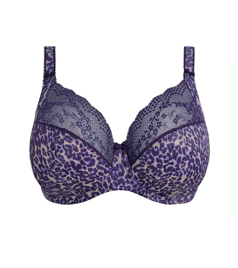 このワイヤー入りプランジブラは、3枚パネルのプリントカップとサイドサポートパネルで、胸を前に出して美しいシルエットを作ります。カップ上部には柔らかく伸縮性のある上質なレースを使い、丸みを帯びたデコルテにフィットしやすく設計されています。ネックエッジには伸縮性素材が入っておらず、着用時に滑らかで自然な仕上がりが得られます。背面はプリントストレッチ生地で作られ、パワーネットが安定感とサポート力をプラス。狭いアンダーバンドには伸縮性素材がしっかり包まれ、ズレを最小限に抑えて快適に着用可能です。