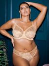 三枚パネル仕立てのカップとサイドサポートパネルが理想的な前方形状を提供し、ストレッチレースのトップカップが丸みのあるシルエットを作ります。柔軟性のあるネックエッジが快適なフィット感を確保し、可愛らしいリボンのディテールが全体を引き締めます。