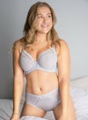シルエットを整え、サポート力を高める外側と内側のサイドスリングを備えた3枚仕立てのカップ。サイド、バック、ネックラインの快適なストレッチ メッシュがフィット感を提供します。装飾的なレースがフロント中央を飾ったお洒落なデザイン。