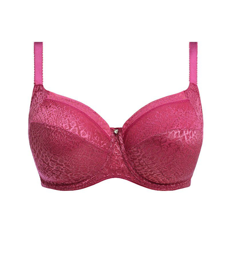 Evedenのシグネチャーシリーズ「Envisage」コレクション。SS25限定カラーのパッションは、深みのあるマゼンタトーンに、繊細な虹色の輝きが全体に散りばめられた美しい仕上がりです。スネイクモチーフのジャガード織レースはストレッチが効き、1日中肌に馴染み寄り添う優しい着心地です。