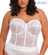 適度な圧迫力を持つ、このフルカバレッジのブライダルレースビスチェは、快適なフィット感でスリムに引き締めます。大切な日に、ドレスのラインを際立たせ、スタイルを最も美しく見せるためのシェイピングとサポートを提供してくれます。