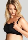 妊娠中から授乳時まで着用いただける新マタニティブラ、キャサリンが新登場。ブラックのマイクロファイバー生地と、ストレッチレースを合わせたモダンでスタイリッシュなデザインです。ノンワイヤーの快適な着心地と、内側にほどこされたサイドスリングで自然な脇寄せ。カップ内側は縫い目のないスムースな生地(パッド加工なし)になっており、肌に優しく纏うような感覚です。後ろのホックは体型(胸郭)の変化に柔軟に対応する6段階調整ホック。片手で簡単に開閉が可能なクリップ仕様です。