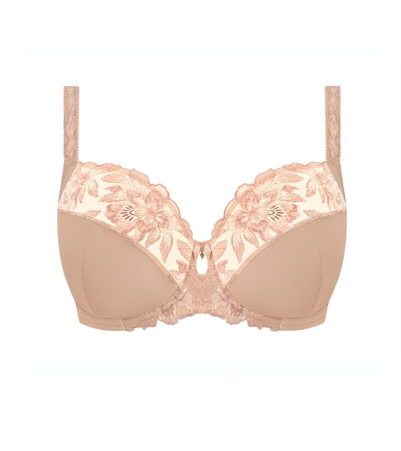 トップカップから土台にかけてあしらわれた多色使いの刺繍と、さりげなくきらめくルレックスのディテールが、上品で洗練された印象を演出。