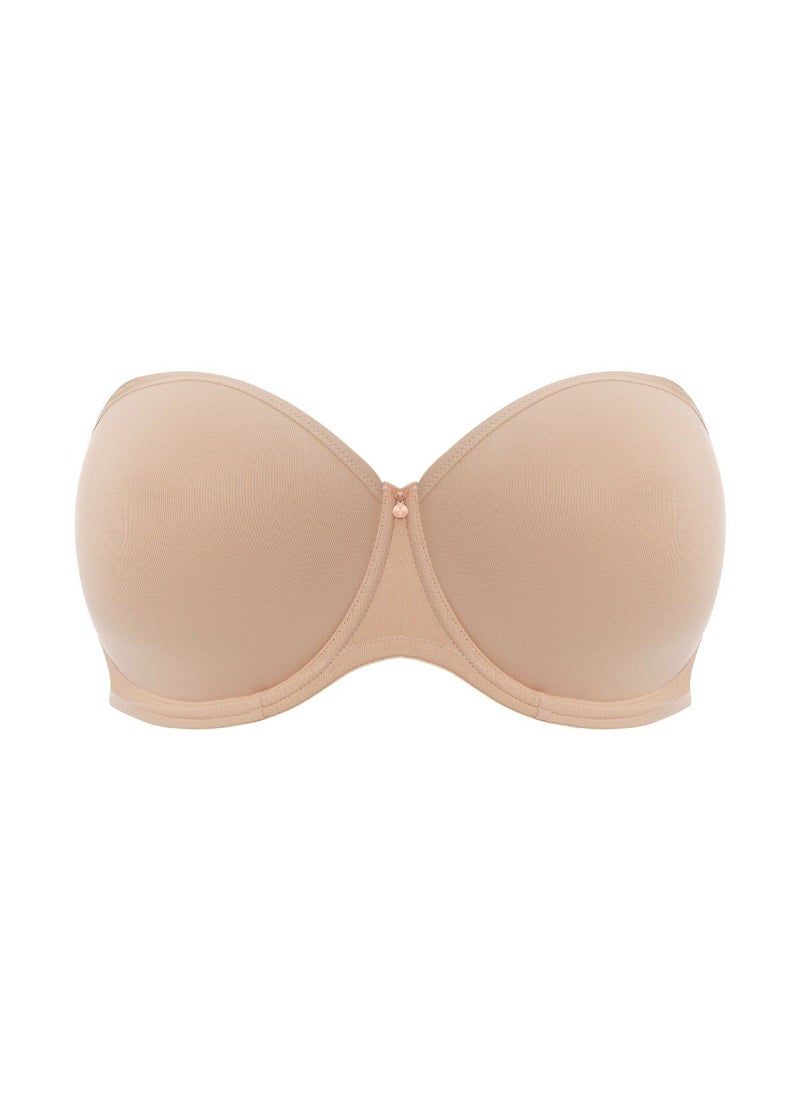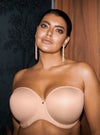 しっかりしたサポートと丸みを帯びた形成モールドカップのストラップレスブラです。バストラインにフィットするようにスイートハートネックラインという丸いVネックカットを採用。背中のフレックスボーンは食い込みを防いでくれます。シリコンコーティングが施された上部背面で肌に優しい安定したフィット感を提供します。取り外し可能なマルチウェイストラップで、多彩なルックを楽しめます。