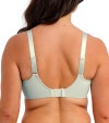 カップにはさりげないジオメトリックのエンボス加工を施し、クレードル部分には多色使いの刺繍とルレックスのきらめきをプラス。フロントストラップにも刺繍トリムをあしらい、