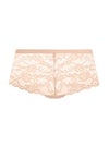 総レース(ストレッチレース)で柔らかな履き心地のショーツ。透け感のあるセクシーなデザインです。バックスタイルは、ブリーフラインがうつりにくい特殊なウェーブカット。